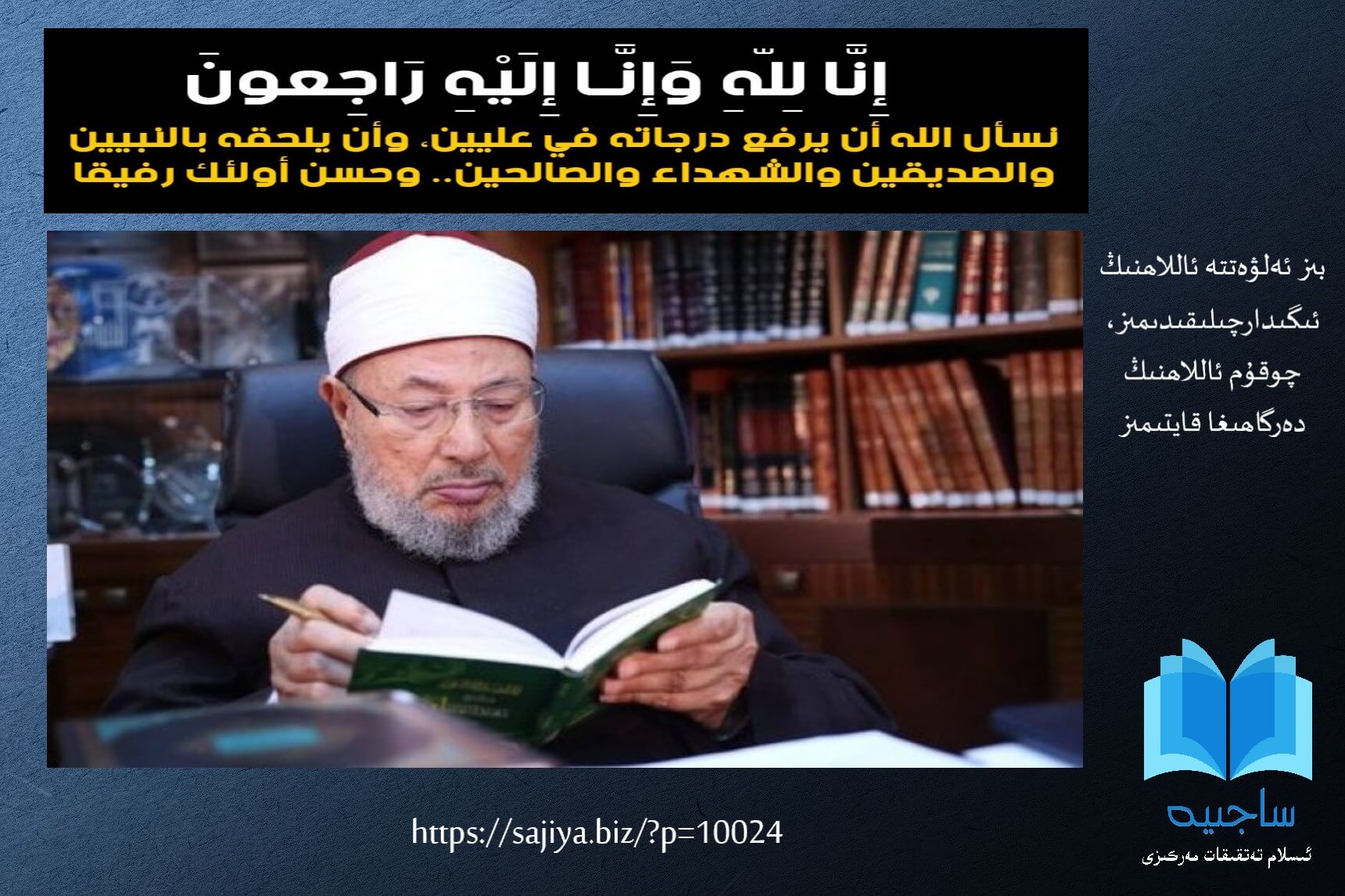 ئالەمى ئىسلام ئەسىرىمىز ئىسلام ئاسمىنىدا چاقنىغان يۇلتۇز، قاراڭغۇ دىللەرنى يورۇتقان قۇياش ۋە تېنەپ – تەمتىرەپ قالغانلارغا يول كۆرسەتكۈچى ماياك، ھەممە ئېتىراپ قىلغان رەببانىي ئالىم ۋە مۇتتەقى بىر ئۆلىماسىدىن ئايرىلدى. ھەممىگە قادىر ھەقتائالادىن ئۆزى بەرگەن ھىجرىي 99 يىللىق ئۆمرىگە قارىي قۇرئانلىق، ھەق يولىنى چىڭ تۇتۇش سەۋەبلىك ئۈچ قېتىملىق زىندان، ھەقىقەتنى نامايىش قىلغانلىقى ئۈچۈن ئۆز كىندىك قېنى تۆكۈلگەن ئانا ۋەتىنىدىن مەجبۇرىي ھىجرەت، شۇنداقلا ئونلاپ كىتاب، مىڭلاپ فەتۋانى سىغدۇرغان مەرھۇم يۈسۈف قەرەداۋىينى مەغپىرەت قىلىشىنى، ئۇنىڭغا رەھىم – شەپقەت قىلىشىنى، ئەڭ ياخشى مۇكاپات بىلەن مۇكاپاتلىشىنى، جەننىتىدىن ئورۇن بېرىشىنى سورايمىز.