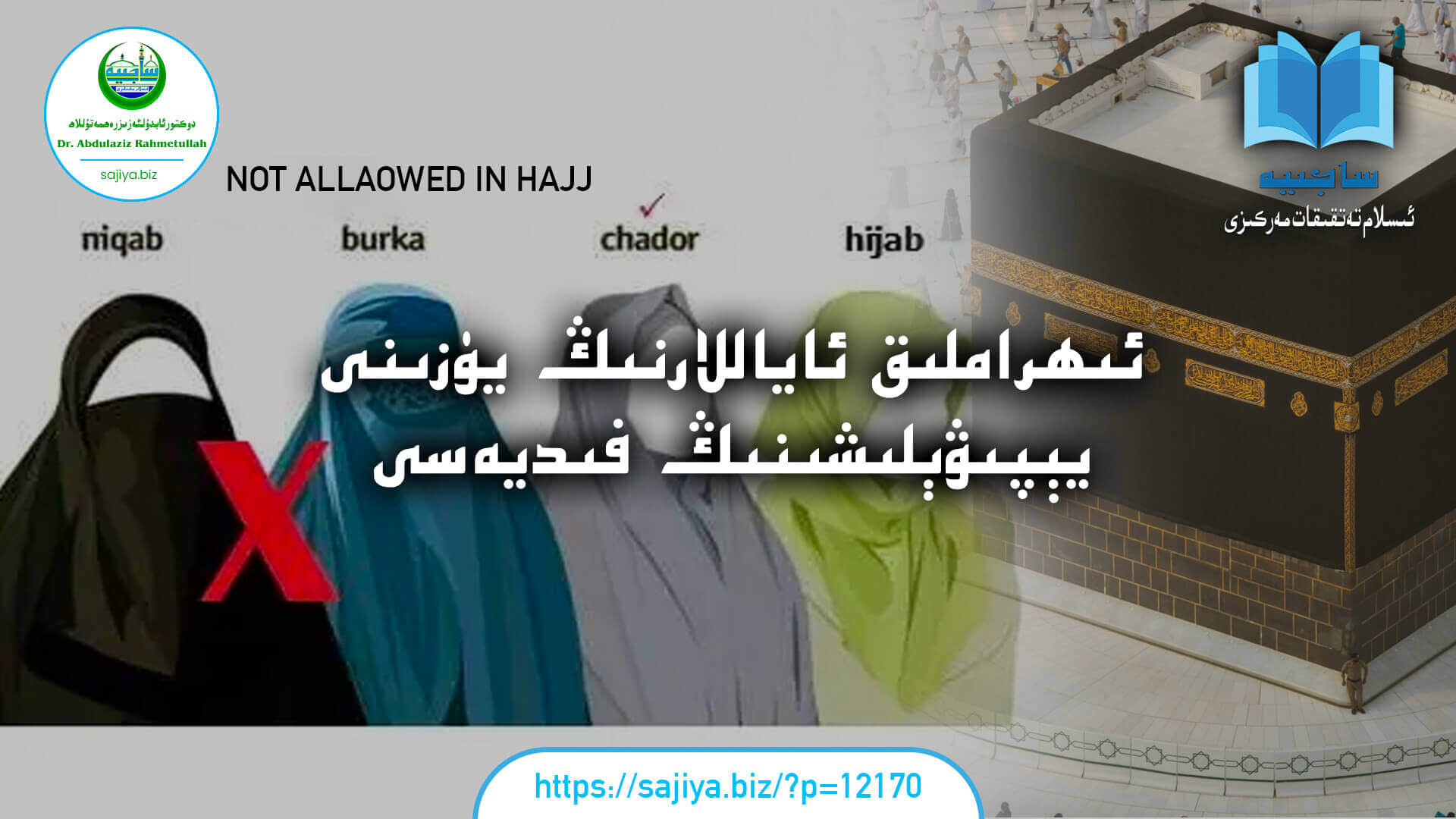 — كۆينەك، سەللە، ئىشتان، دوپپىلىق جىلبابلارنى كىيمەڭلار! پەقەت قونچسىز كەش تاپالمىغان ئادەم قونچلۇق كەشنىڭ قونچىسىنى ئوشۇقىدىن تۆۋەن قىلىپ كېسىۋېتىپ كىيسۇن. زەپە ۋە زەرچىۋە بىلەن بويالغان كىيىمنى كىيمەڭلار! ئىھراملىق ئايال يۈزىنى ياپمايدۇ، پەلەي كىيمەيدۇ، — دېدى»(1).