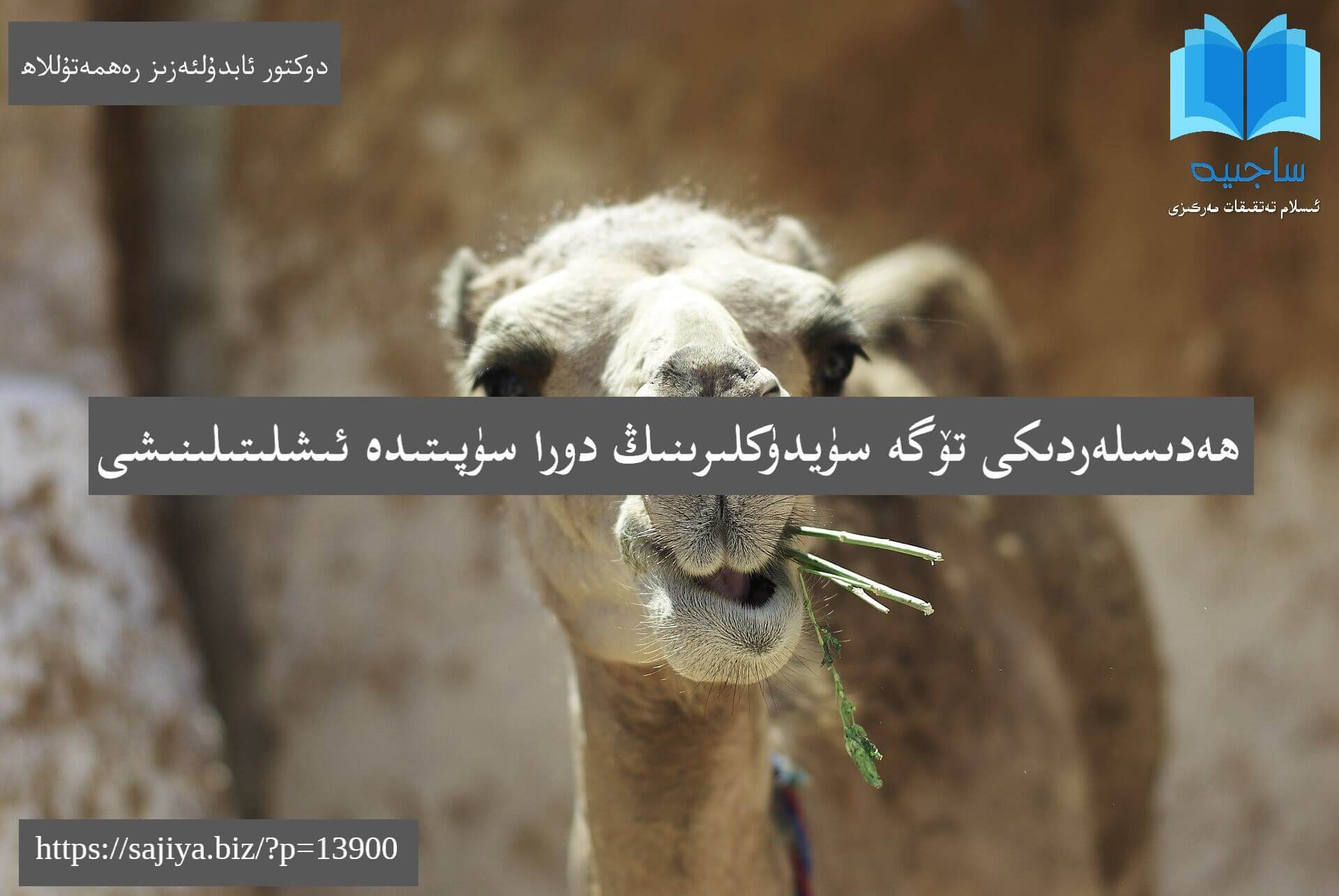 ئەنەس ئىبنى مالىك رەزىيەللاھۇ ئەنھۇ رىۋايەت قىلغانكى: «ﺋﯘﻛﻠﻰ ﻳﺎﻛﻰ ﺋﯘﺭﻩﻳﻨﻪ ﻗﻪﺑﯩﻠﯩﺴﯩﺪﯨﻦ ﺑﯩﺮﻗﺎﻧﭽﻪ ﻛﯩﺸﻰ ﻣﻪﺩﯨﻨﻪﮔﻪ ﻛﯧﻠﯩﭗ ﻣﻪﺩﯨﻨﻪﻧﯩﯔ ﮪﺎﯞﺍﺳﯩﻐﺎ ﻛﯚﻧﻪﻟﻤﻪﻱ ﺋﺎﻏﺮﯨﭗ ﻗﺎﻟﻐﺎﻥ ﺋﯩﺪﻯ، پەيغەمبەر ﺳﻪﻟﻠﻪﻟﻼﮪﯘ ﺋﻪﻟﻪﻳﮭﻰ ﯞﻩﺳﻪﻟﻠﻪﻡ ﺋﯘﻻﺭﻏﺎ ﺑﯩﺮﻧﻪﭼﭽﻪ تۇياق ﺳﯜﺗﻠﯜﻙ ﺗﯚﮔﯩﻠﻪﺭﻧﻰ ﺑﯘﻳﺮﯗﭖ ﺑﻪﺭﺩﻯ ﯞﻩ ﺋﯘﻻﺭﻧﻰ ﺗﯚﮔﯩﻠﻪﺭ ﺑﯧﻘﯩﻠﯩﯟﺍﺗﻘﺎﻥ ﻳﻪﺭﮔﻪ ﺑﯧﺮﯨﭗ، ﺗﯚﮔﯩﻠﻪﺭﻧﯩﯔ ﺳﯜﻳﺪﯛﻛﻠﯩﺮﯨﺪﯨﻦ، ﺳﯜﺗﻠﯩﺮﯨﺪﯨﻦ ﺋﯩﭽﯩﺸﻜﻪ ﺑﯘﻳﺮﯗﺩﻯ. ﺋﯘﻻﺭ ﺑﯧﺮﯨﭗ ﺳﺎﻗﺎﻳﻐﺎﻧﺪﯨﻦ ﻛﯧﻴﯩﻦ، پەيغەمبەر ﺳﻪﻟﻠﻪﻟﻼﮪﯘ ﺋﻪﻟﻪﻳﮭﻰ ﯞﻩﺳﻪﻟﻠﻪﻣﻨﯩﯔ تۆگىچىسىنى ﺋﯚﻟﺘﯜﺭﯛﯞﯦﺘﯩﭗ، ﺗﯚﮔﯩﻠﻪﺭﻧﻰ ﺋﯧﻠﯩﭗ ﻗﺎﭼﺘﻰ، ئەتىسى ﺋﻪﺗﯩﮕﻪﻥ ﺧﻪﯞﻩﺭ ﻛﯧﻠﯩﭗ، ﺭﻩﺳﯘﻟﯘﻟﻼﮪ ﺋﯘﻻﺭﻧﯩﯔ ﺋﺎﺭﻗﯩﺴﯩﺪﯨﻦ ﺋﺎﺩﻩﻡ ﺋﻪﯞﻩﺗﺘﻰ، ﭼﯜﺷﻜﻪ ﻳﯧﻘﯩﻦ ﺋﯘﻻﺭ ﺗﯘﺗﯘﭖ ﻛﯧﻠﯩﻨﯩﯟﯦﺪﻯ، ﺭﻩﺳﯘﻟﯘﻟﻼﮪﻨﯩﯔ ﺑﯘﻳﺮﯗﻗﻰ ﺑﯩﻠﻪﻥ ﺋﯘﻻﺭﻧﯩﯔ ﭘﯘﺕ – ﻗﻮﻟﻠﯩﺮﻯ ﻛﯧﺴﯩﻠﺪﻯ، ﻛﯚﺯﻟﯩﺮﯨﮕﻪ مىل تارتىلىپ ﺋﻪﻣﺎ ﻗﯩﻠﯩﻨﺪﻯ. ﺋﯘﻻﺭ ﺳﯘ ﺗﻪﻟﻪﭖ ﻗﯩﻠﺴﯩﻤﯘ ﺑﯧﺮﯨﻠﻤﻪﻱ سايلىققا ﺗﺎﺷﻼﻧﺪﻯ». ﺋﻪﺑﯘ ﻗﯩﻼﺑﻪ: «ﺋﯘﻻﺭ ﺋﻮﻏﺮﯨﻠﯩﻖ ﻗﯩﻠﺪﻯ، ﺋﺎﺩﻩﻡ ﺋﯚﻟﺘﯜﺭﺩﻯ، ﺋﯩﻤﺎﻧﺪﯨﻦ ﻳﺎﻧﺪﻯ. ﺋﺎﻟﻼﮪ ﯞﻩ ﺋﺎﻟﻼﮪﻨﯩﯔ ﺭﻩﺳﯘﻟﯩﻐﺎ ﻗﺎﺭﺷﻰ ﺋﯘﺭﯗﺵ ئېلان ﻗﯩﻠﺪﻯ» ﺩﯦﺪﻯ(«سەھىھەين»).