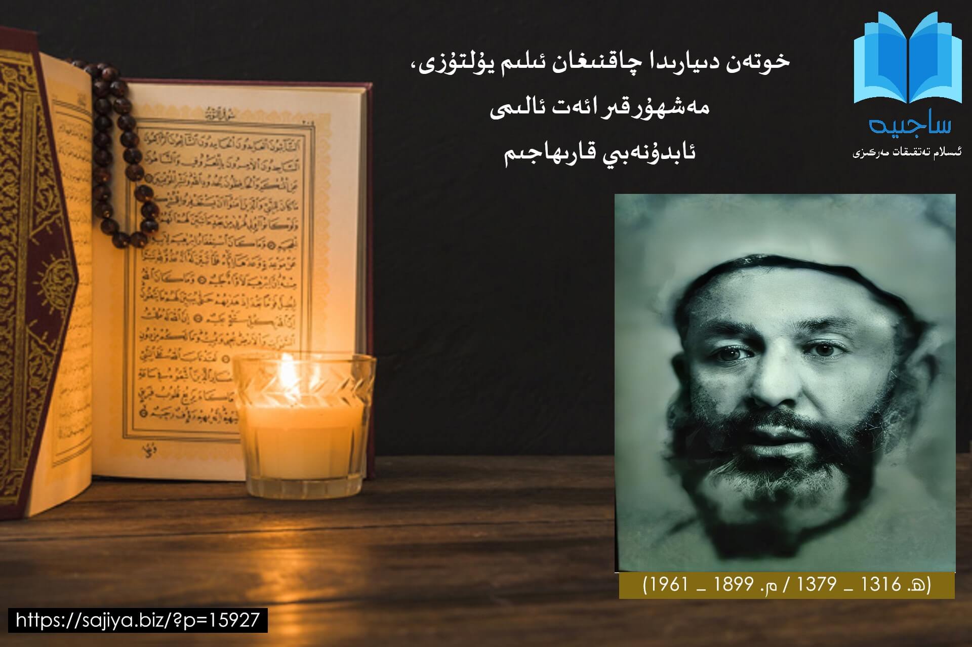 1. ئابدۇنەبىي قارىھاجىمنىڭ قىزى (ئانام) مەيمۇنە خان ھاجىم ۋە كۈيئوغلى (ۋە شاگىرتى) مەرھۇم (ئاتام) رەھمەتۇللاھ مۇھەممەد ئەلى قارىھاجىم كاشغەرىي.