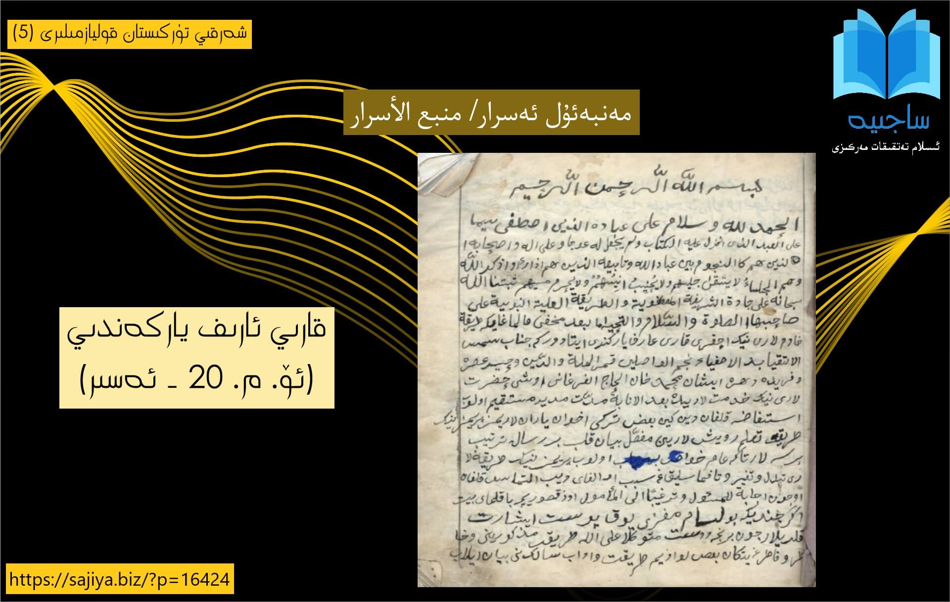 «شەرقىي تۈركىستان قوليازمىلىرى (5) قارىي ئارىف ياركەندىي-مەنبەئۇل ئەسرار/ منبع الأسرار» pdf