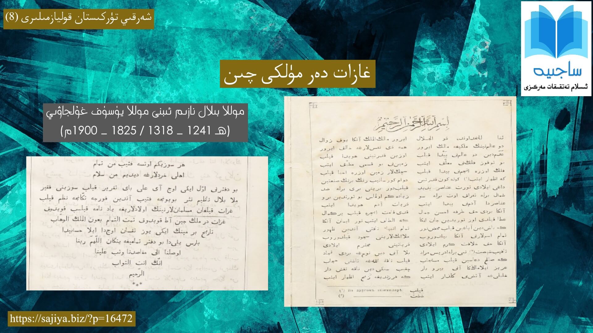 «شەرقىي تۈركىستان قوليازمىلىرى (8) موللا بىلال نازىم ئىبنى موللا يۈسۈف غۇلجاۋىي – غازات دەر مۈلكى چىن1» pdf
