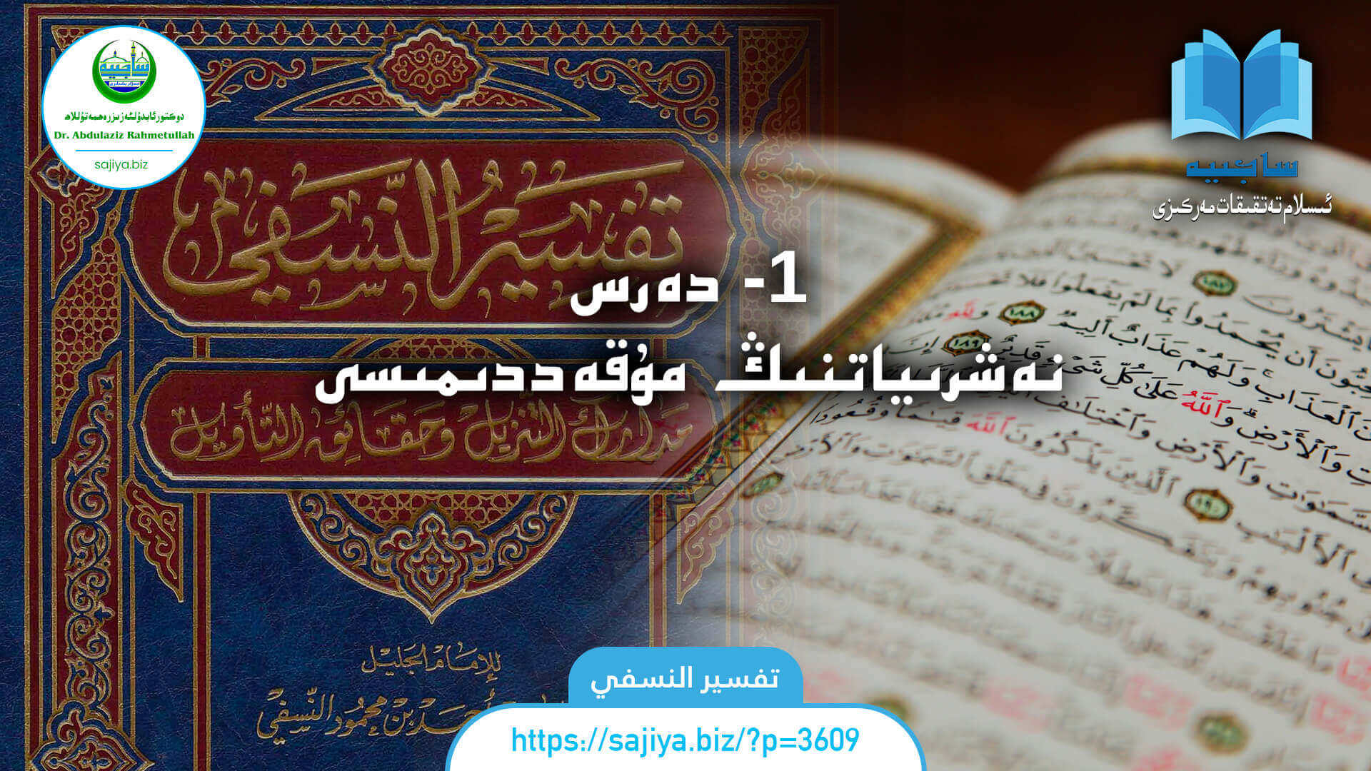 تەفسىرۇ نەسەفىي/ 1- دەرس نەشرىياتنىڭ مۇقەددىمىسى. دەرستە: دوكتور ئابدۇلئەزىز رەھمەتۇللاھ.