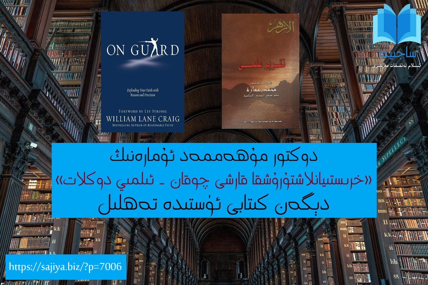 دوكتور مۇھەممەد ئۇمارەنىڭ «خرىستىيانلاشتۇرۇشقا قارشى چوقان – ئىلمىي دوكلات» دېگەن كىتابى «قوغداشقا تەييار تۇرغۇچىلار – ئەقلىڭىزنى ئىمانىڭىزغا قالقان قىلىڭ! On Guard: Defending Your Faith with Reason and Precision)»([1^]) نامىدىكى بىر خرىستىيانلاشتۇرۇش تەشۋىقاتىدا ئورۇن ئالغان دەۋالارنىڭ مۇھىملىرىنى چۆرىدىگەن ھالقىلىق مەسىلىلەر ئۈستىدە توختىلىدۇ.