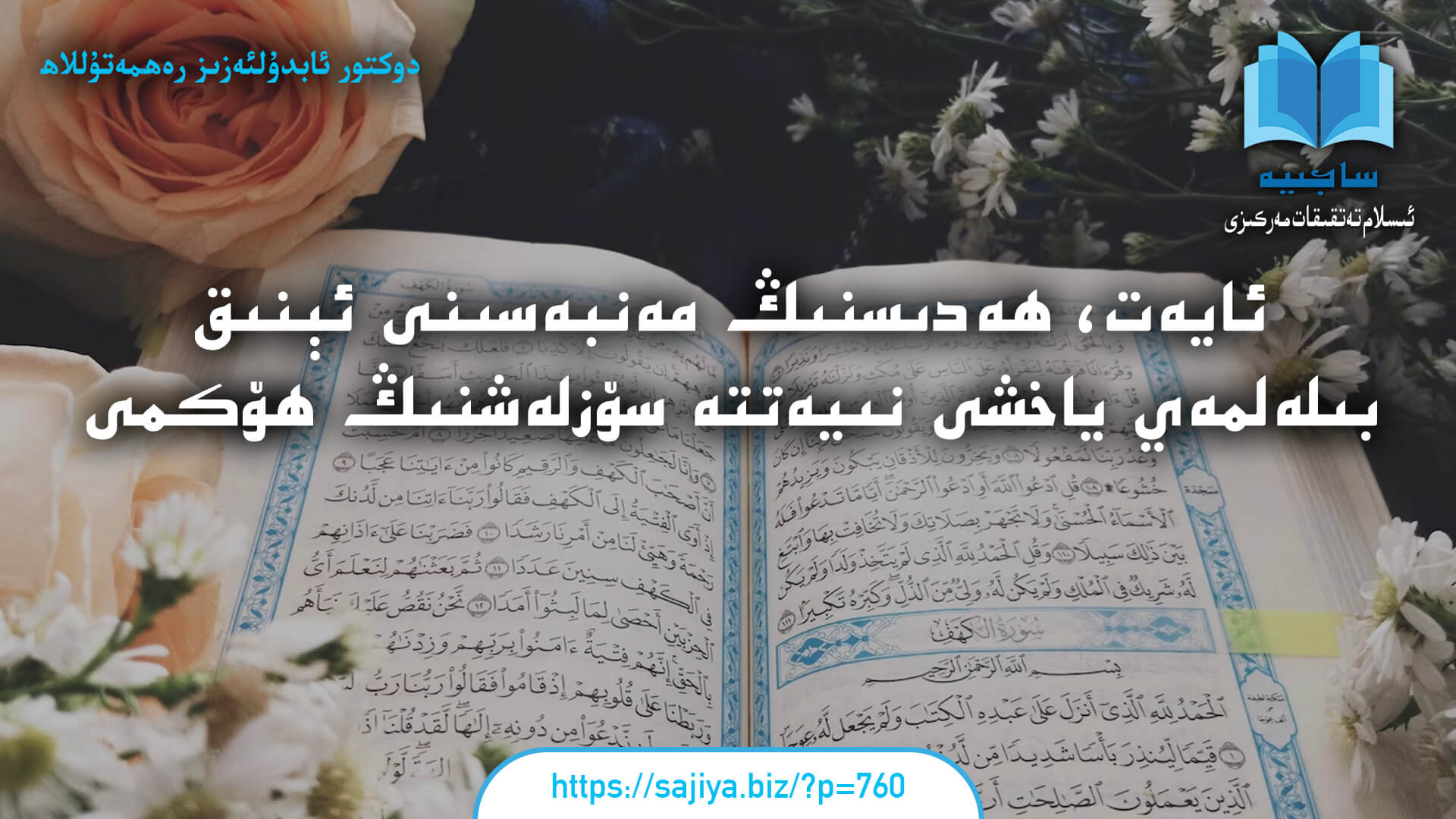 سوئال: ئەسسالامۇئەلەيكۇم ۋەرەھمەتۇللاھى ۋەبەرەكاتۇھۇ، بىر نەچچە ھەمشىرىلەر جەم بولۇپ ئولتۇرغان ۋاقىتتا، ھەممىمىز ياخشى نىيەتتە مۇشۇ ھەمشىرىلىرىمىز مۇنداق – مۇنداق مەسىلىلەرنىڭ بارلىقىنى بىلىۋالسۇن دەپ ياكى بولمىسا يېڭىدىن ھىجابلانغان ھەمشىرىلەرگە ياخشىراق دەۋەت قىلىش ئۈچۈن بەزى نەسىھەتلەر قىلىش جەريانىدا، قۇرئاندىن ۋە ياكى ھەدىسلەردىن ۋە ياكى ساھابەلەرنىڭ ھاياتىنى سۆزلەۋېتىپ، دەماللىققا شۇ سۈرە ياكى ھەدىسلەرنىڭ ئېنىق مەنبەسىنى بىلەلمەي، «قۇرئان كەرىمدە مۇنداقراق گەپ بار»، ياكى «پەيغەمبىرىمىز مۇنداق قىلىپتىكەن»، ياكى «مۇنداق دەپتىكەن» دەپ سۆزلىسە بولامدۇ؟ ئارىمىزدا بۇنداق ئىشلار بولۇپ تۇرىدۇ، ھەممىمىزنىڭ بىلىمى چەكلىك، ئەتراپىمىزدا بىلىملىكرەك ئۇستازلار ۋە ياكى قېرىنداشلار بولمىغاچ، بىلەلمىگەن مەسىلىلەرنى بىر نەچچىمىز بىر يەرگە جەم بولۇپ، بىلگىنىمىزنى دەپ ھەل قىلىشقا تىرىشىمىز. يەنە ئاللاھنىڭ ياردىمى بىلەن باشقا قىزلارغىمۇ ئىسلام ۋە ياخشى – يامان ئىشلار ئۈستىدە نەسىھەتلەر بولۇپ قالىدۇ. مەنبەسىنى ئېنىق بىلمەي تۇرۇپ سۆزلىسەك ياخشى بولمايدىغانلىقىنى بىلىمىز، لېكىن شۇنداق بولسىمۇ، بىلىمىمىز چەكلىك، ئەتراپىمىزدىمۇ پۇرسەت بولمىدى، پەقەت شۇ توردا كۆرگەن ياكى باشقا قېرىنداشلاردىن ئاڭلىغىنىمىزنى يەتكۈزۈش ئارقىلىق ئىسلامغا بولغان چۈشەنچىمىزنى ئاشۇرۇشقا تىرىشىمىز. شۇڭا، مۇشۇ توغرىسىدا ئېنىقراق بىر چۈشەنچە بەرگەن بولسىڭىز.