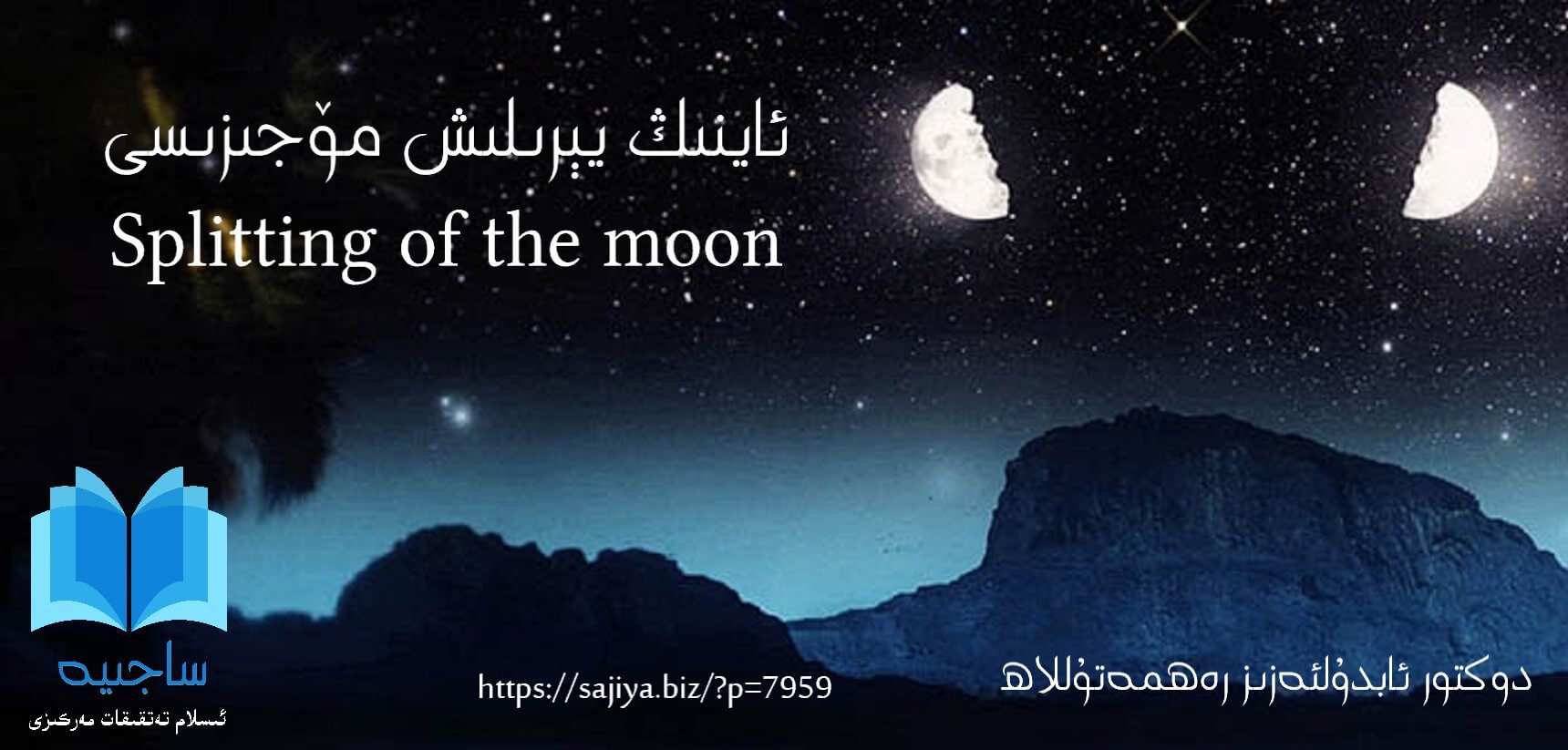 ئابدۇللاھ ئىبنى مەسئۇد رەزىيەللاھۇ ئەنھۇ مۇنداق دەپ رىۋايەت قىلىدۇ: رەسۇلۇللاھ سەللەللاھۇ ئەلەيھى ۋەسەللەم زامانىدا ئاي يېرىلىپ ئىككىگە بۆلۈنگەنىدى، رەسۇلۇللاھ: «گۇۋاھ بولۇڭلار» دېدى(1).