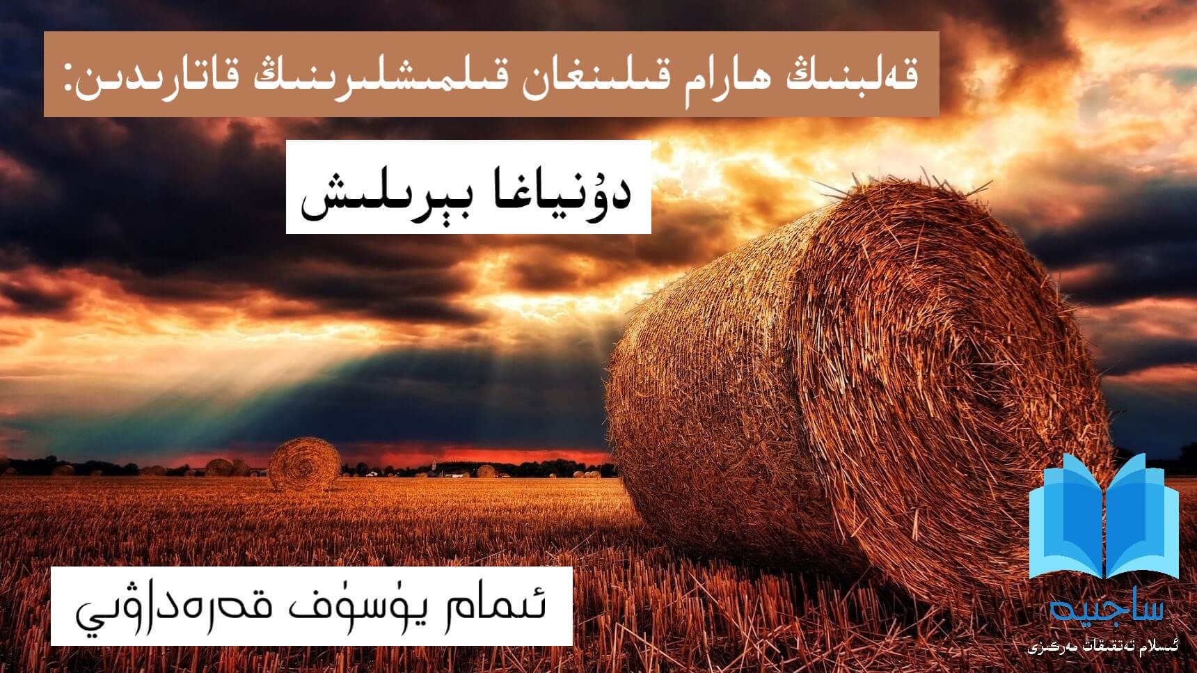 دۇنياغا بېرىلىشمۇ ئىسلام دىنى ھارام قىلغان، ئۇنىڭدىن، ئۇنىڭ بىلەن مەغرۇرلىنىشتىن ۋە ئۇنىڭغا مۇپتىلا بولۇپ قېلىشتىن قاتتىق ئاگاھلاندۇرغان قەلب قىلمىشلىرىنىڭ قاتارىدىندۇر.