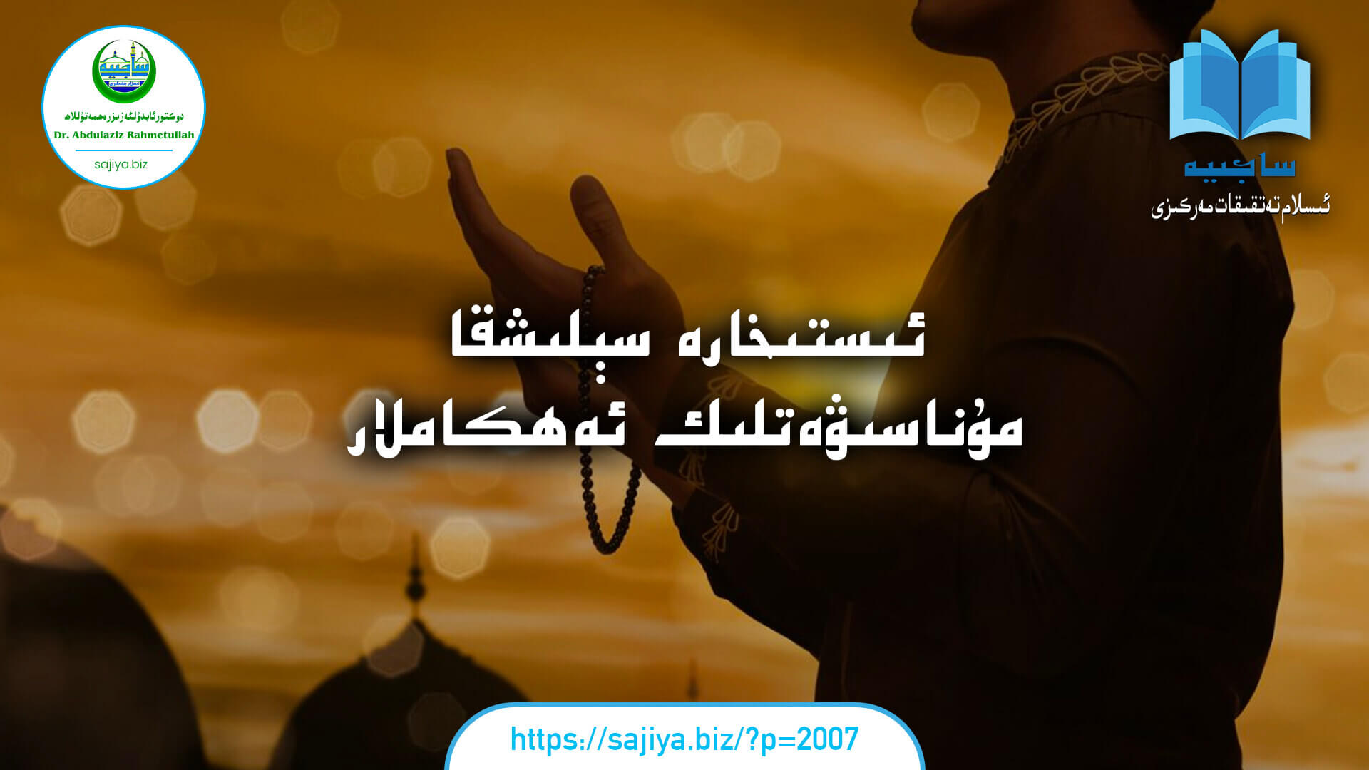 دوكتور ئابدۇلئەزىز رەھمەتۇللاھ ئىستىخارە (الْاِسْتِخَارَةُ): «كىشى ئىككىلەنگەن بىر ياكى بىرقانچە ئىشتىن ئەڭ خەيرلىك بولغىنىغا يول كۆرسىتىشنى ئاللاھتىن تىلەش»تۇر. ئىستىخارەنىڭ…