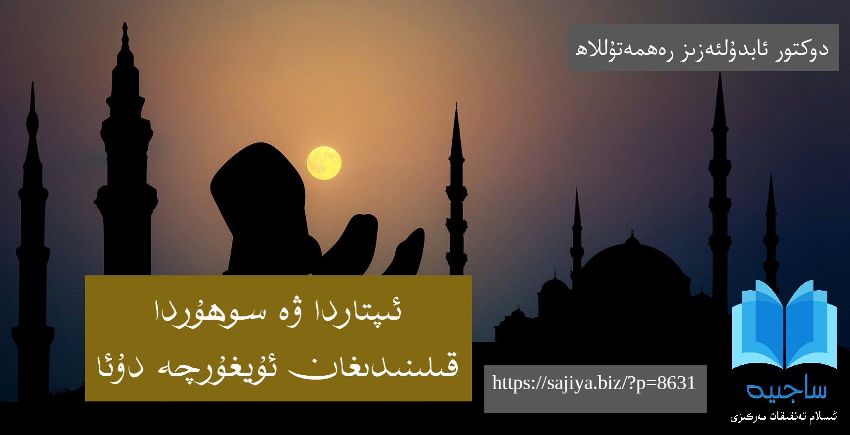 «ساجىيە ئىسلام تەتقىقات مەركىزى» خەلقىمىز ئۈچۈن رامازانلىق زۆرۈر بولغان دىنىي مەسىلىلەردە پەتىۋا ۋە مەسلىھەت بېرىش خىزمىتىنى يولغا قويىدۇ. پەتىۋادا: دوكتور…
