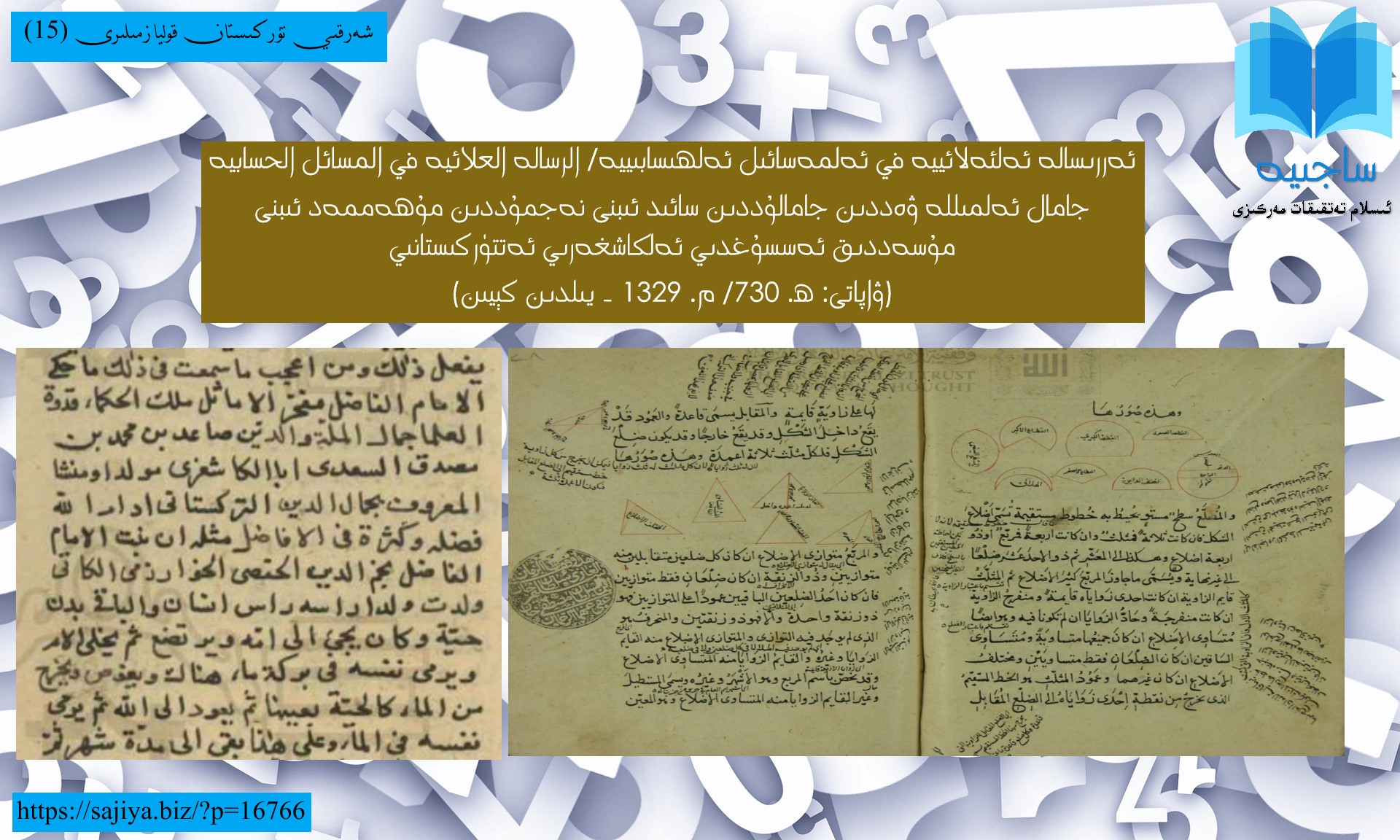 شەرقىي تۈركىستان قوليازمىلىرى (15) جامالۇددىن سائىد ئەسسۇغدىي ئەلكاشغەرىي ئەتتۈركىستانىي – ئەررىسالە ئەلئەلائييە في ئەلمەسائىل ئەلھىسابىييە/ الرسالة العلائية في المسائل الحسابية